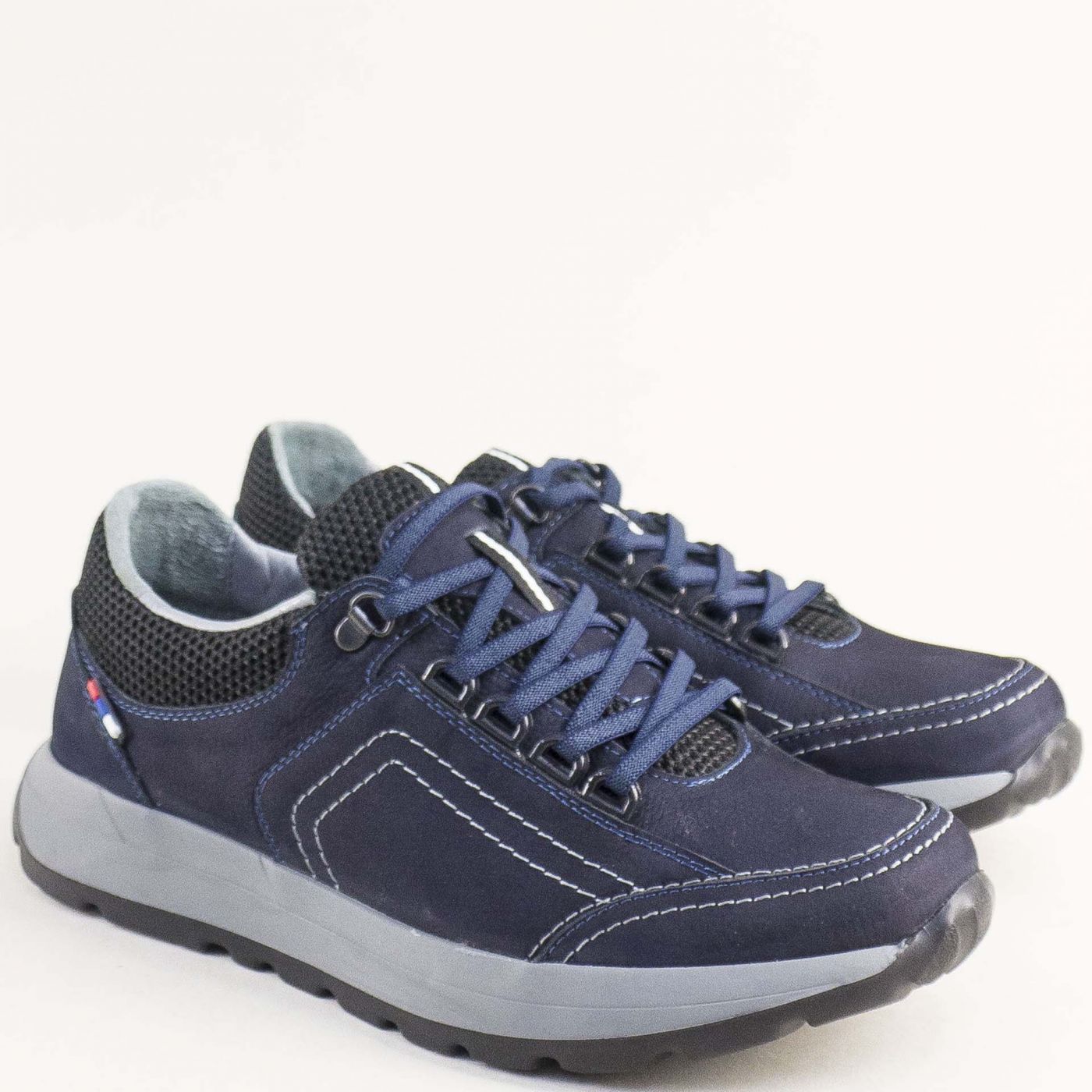 Естествен набук мъжки сини маратонки с връзки на равно ходило 1640ns