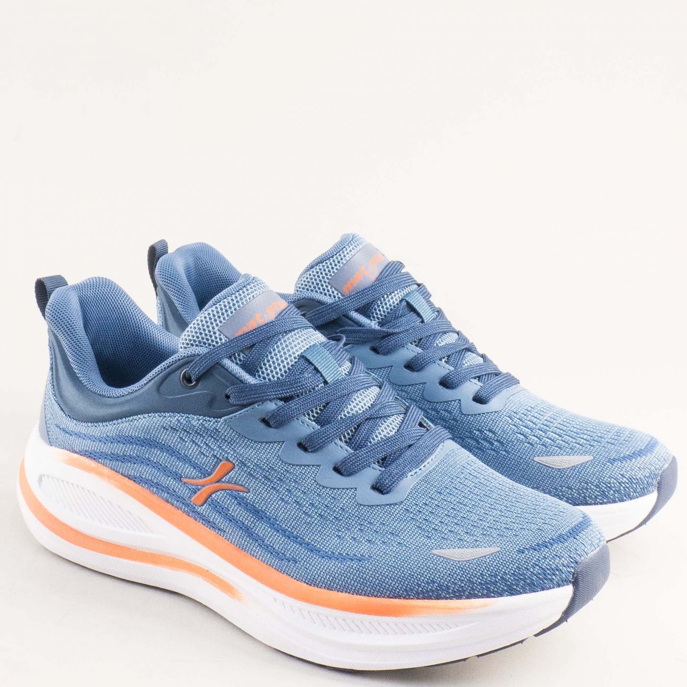 Мъжки маратонки в син цвят с оранжеви детайли 194243s