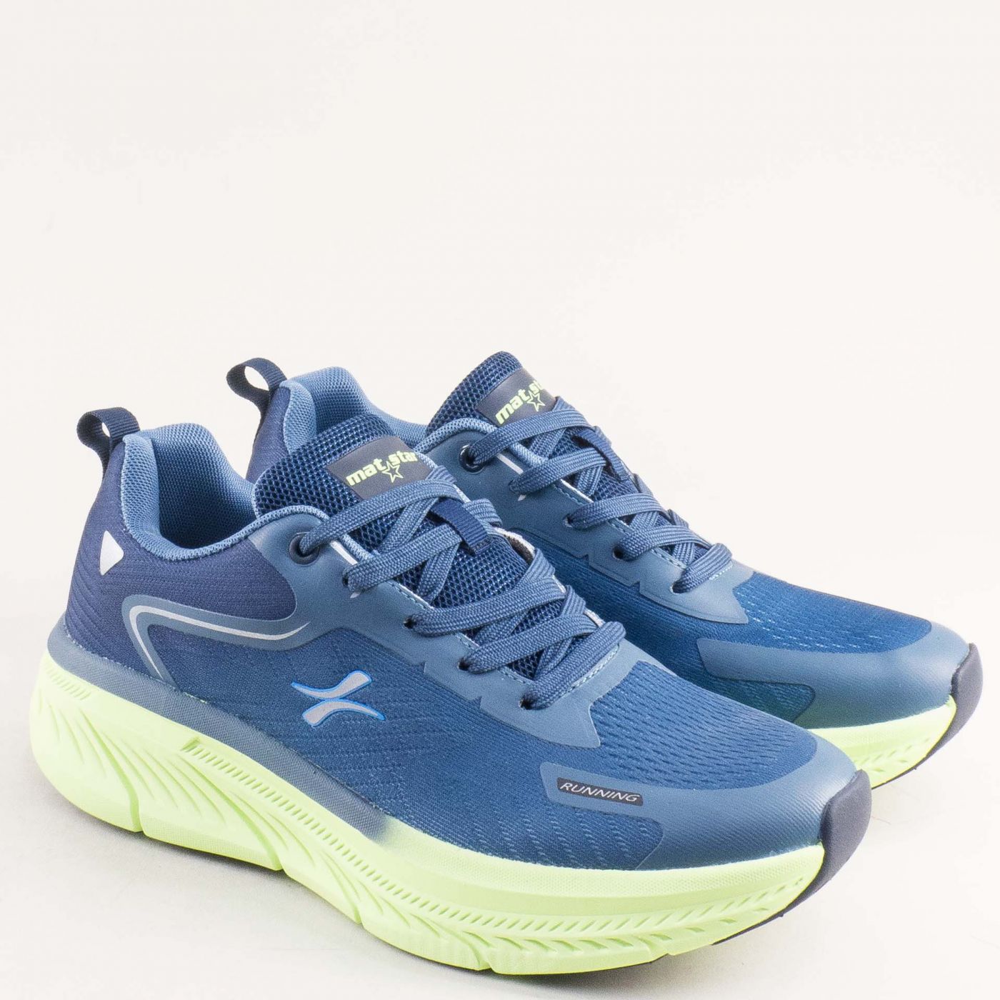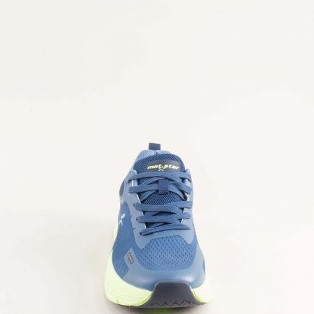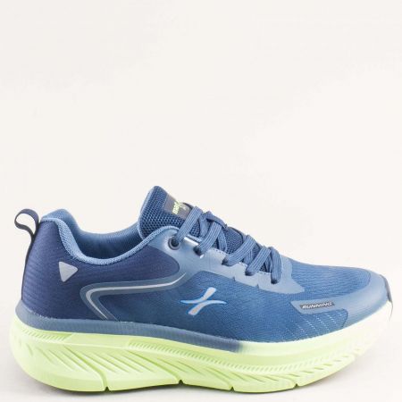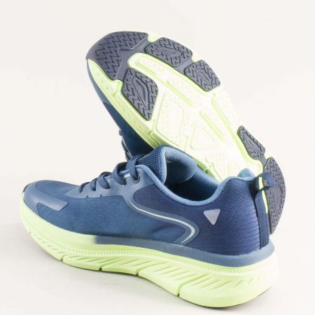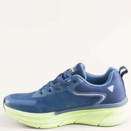 Сини текстилни мъжки маратонки на зелено ходило с връзки 194245s